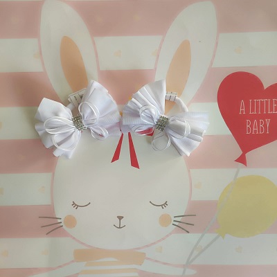 Белый бант на резинке. Ничто не может с такой легкостью и ненавязчивостью привить девочке чувство стиля, как очаровательные банты в прическе. Добавьте в любой образ своей малышки банты и образ автоматически наполнится нотками торжественности с привкусом воздушной непосредственности.