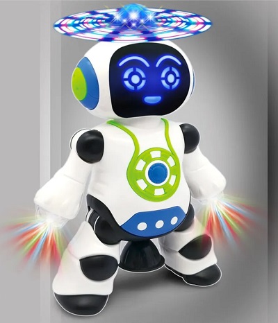 Танцующий робот игрушка со световыми и звуковыми эффектами весело танцует, кружится, двигает руками и ногами, вращает пропеллером и выпускает яркие, led лучи. Диско эффект игрушечного танцора создается питанием от 3 батареек АА (приобретаются отдельно). Игрушечный, детский робот танцор особенно красив с приглушенным светом. На стенах и потолке создается проекция светового представления. В руки и пропеллер встроены разноцветные лампочки.