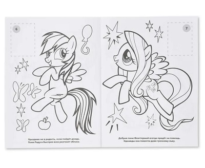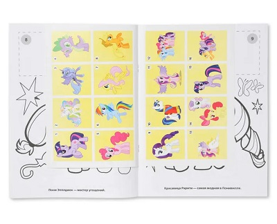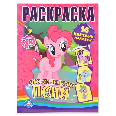 В раскраске "Мои маленькие пони" малыш сможет встретиться с любимыми героями одноимённого мультфильма и расскрасить их, а так же в своем творчестве использовать наклейки.