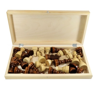 • шахматные фигуры из дерева – 32 шт. (основа диаметром 26 мм; высота от 38 до 72 мм).