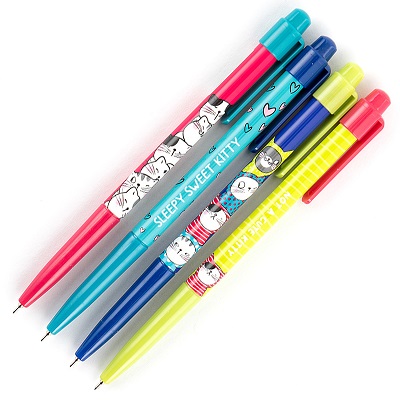 Ручка шариковая " Basir " Кошки синяя 0,7мм, толщина письма 0,35мм, цветной корпус с рисунком, ассор
