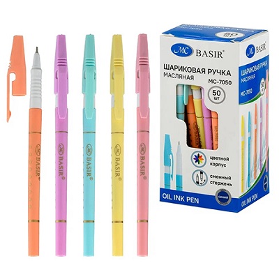 Ручка шариковая " Basir " синяя 0,7мм, чернила на масляной основе, цветной-пастель пластиковый корпу