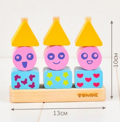 Яркая,веселая игра. Состоит из прямоуголной платформы с тремя столбиками, на которые надеваются Веселые фигурки трех форм. Сортеруйте вместе с малышом по формам, цвету, эмоциям. А еще больше вариантов игры Вы найдете на нашем официальном сайте (адрес на упаковке игры).