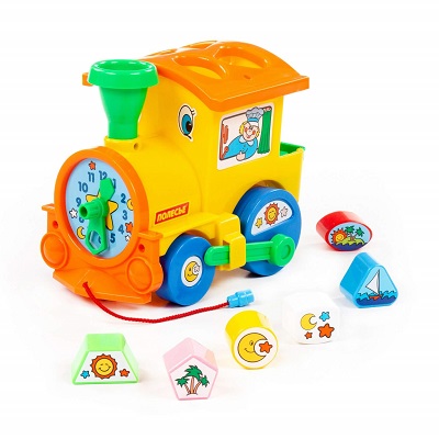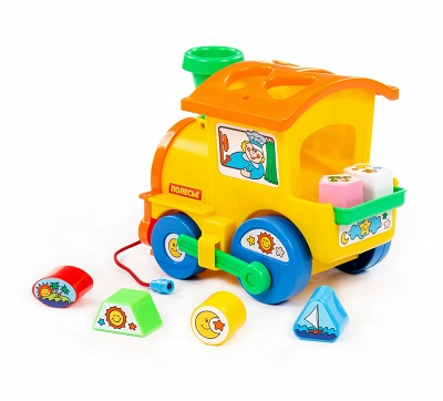Занимательный паровоз выполняет несколько функций. Игрушка выступает в роли сортера и каталки на шнурке. Сортер знакомит ребёнка с цветом и формой, а также тренирует мелкую моторику рук. В ходе игры малышу необходимо подобрать к каждой фигурке отверстие той же формы, это развивает логическое мышление. Использование игрушки в качестве каталки позволяет ребёнку постичь пространственные свойства предметов.