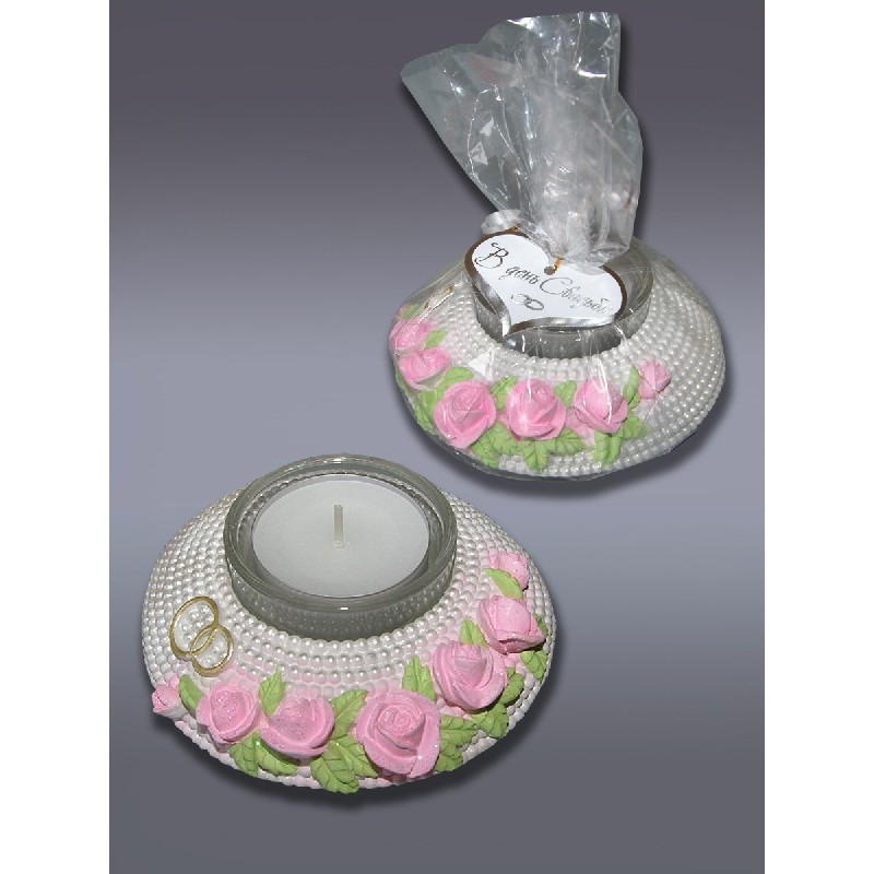 подсвечник "жемчужный с розами" со свечой Подробнее