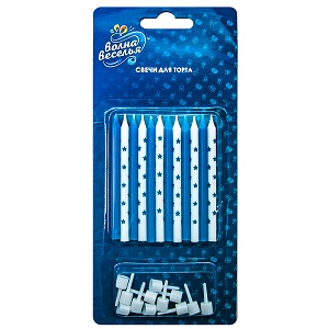 Свечи В звездочку, голубой, 8см 12шт №132490 Подробнее