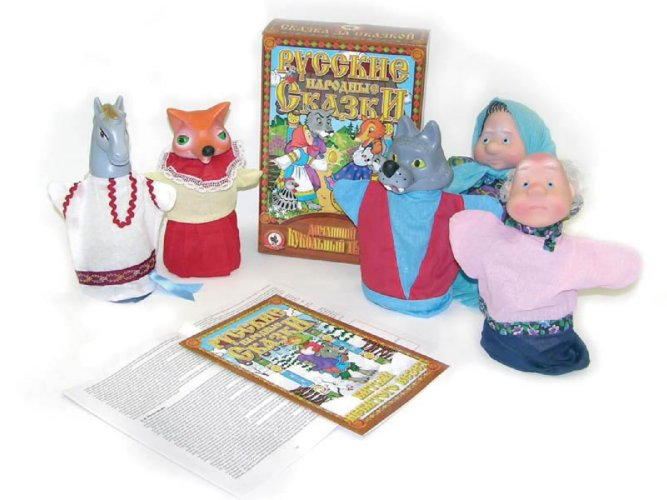 Куклы-перчатки 5 шт (дед, бабка, лиса, волк, лошадь); Сценарий сказки