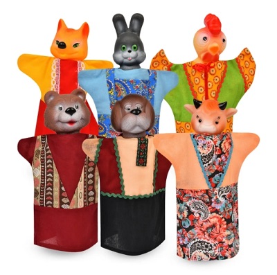 Куклы-перчатки — 6 шт. (заяц, собака, бык, лиса, медведь, петух)