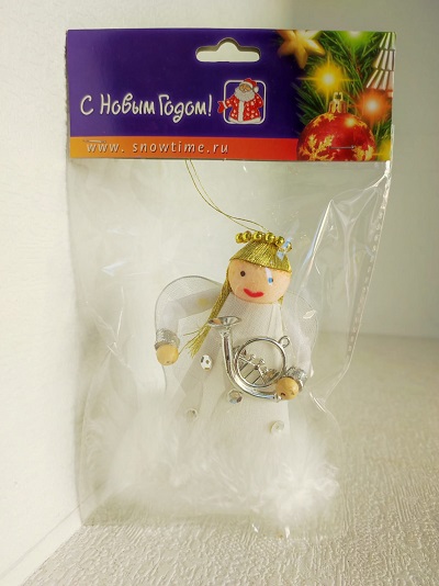 АНГЕЛ 12СМ БЕЛЫЙ С СЕРЕБРОМ С ТРУБОЙ