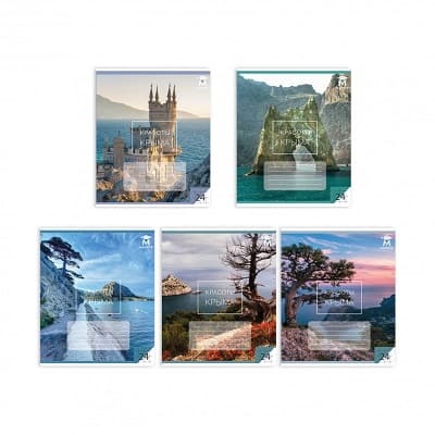 Тетрадь "Красоты Крыма" (5 дизайнов ассорти) в клетку, 24 листа.
