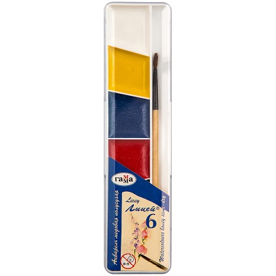 Акварель " Гамма " Лицей 6цв с кистью, пластиковая упаковка Подробнее