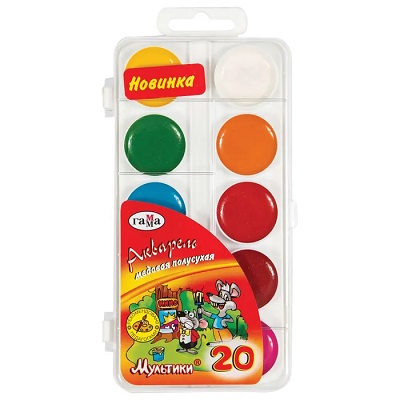 Акварель " Гамма " Мультики 20цв без кисти, медовая, пластиковая упаковка