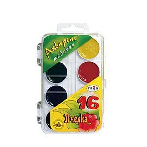 Акварель " Гамма " Пчелка 16цв без кисти, пластиковая упаковка, европодвес