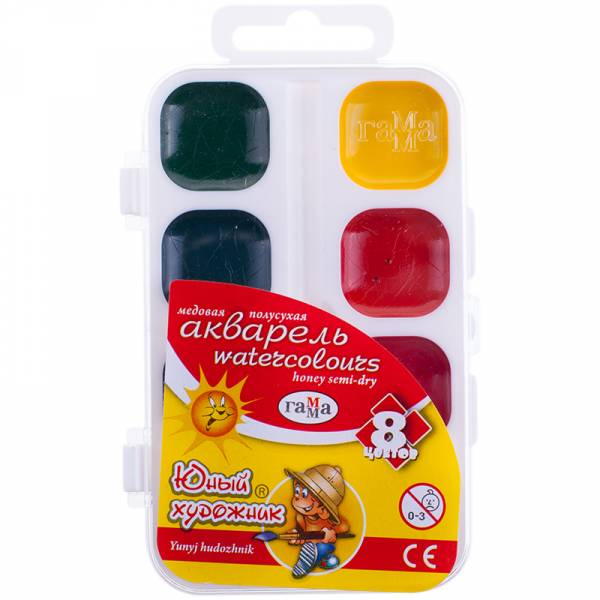 Акварель " Гамма " Юный художник 8цв без кисти, пластиковая упаковка, европодвес