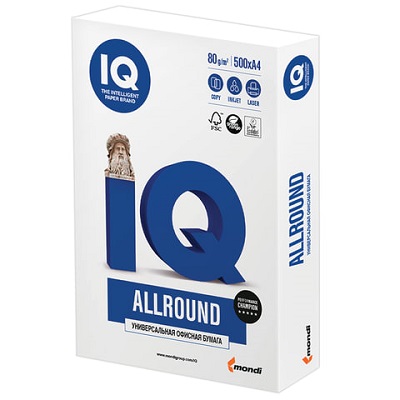 Бумага IQ ALLROUND – универсальная бумага марки «B» в соответствии с ГОСТ Р 57641-2017 для печати в офисе. Имеет многоцелевое назначение и идеальна для повседневных нужд в офисе. Является прекрасным сочетанием качества и экономичности.