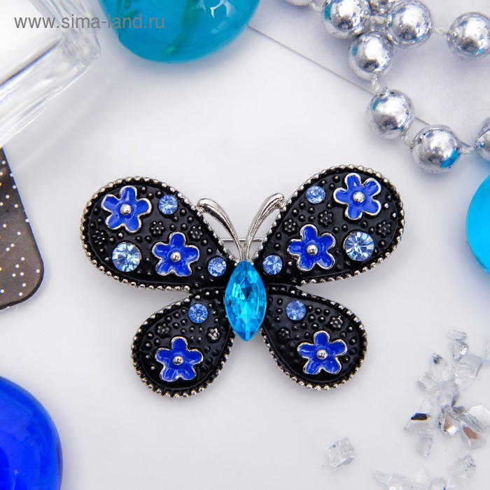 Брошь "Бабочка" цветочная, цвет розово-голубой в серебре 3723778 Подробнее