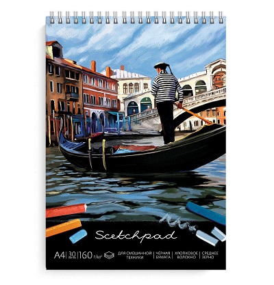 Альбом д/пастели А4 30л ВЕНЕЦИЯ черн.бумага,150г/м2 перфор. арт.49781 (1/15/30шт) Подробнее