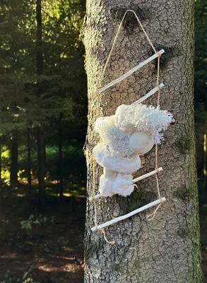 Дед Мороз с лестницей в белом