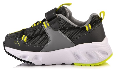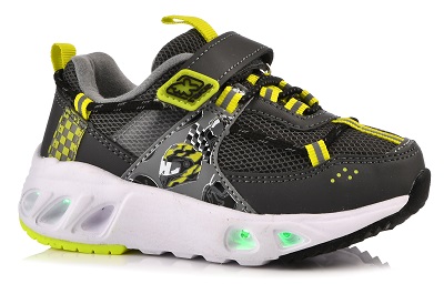 Серые кроссовки для мальчиков, мигающие при ходьбе. Дети приходят в восторг от встроенных в подошву светодиодов, которые горят и днем, и ночью. Синтетический аналог кожи, из которого выполнен верх обуви, прочный, легкий и прекрасно «дышит». Внутри кроссовок для мальчиков мягкая хлопковая подкладка. Анатомическая стелька повторяет изгиб стопы, способствуя профилактике плоскостопия. Эта модель имеет маленький вес и фиксируется на ноге с помощью эластичной шнуровки и липучки. Размер 26.