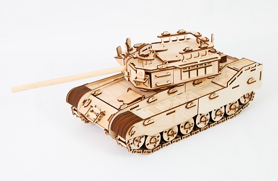 С помощью данного конструктора можно собрать танк, изготовленный мастерами вручную. При сборке не используется клей. Детали стыкуются с помощью пазов и отверстий. Башня грузовика вращается, конструкция очень прочная и надежная. Наш танк умеет передвигаться с характерным лязгом гусениц. Люки открываются и закрываются, а пулемет и башня поворачиваются в нужную сторону.
