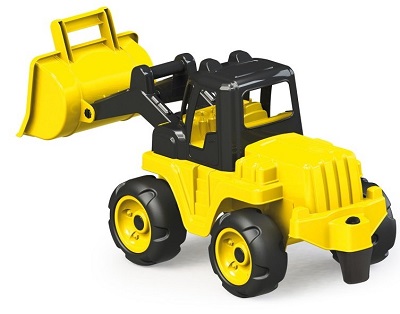 У экскаватора подвижный ковш, установленный в передней части, которым можно черпать песок, а также копать землю. Кабина экскаватора имеет открытый тип, поэтому в нее можно посадить какую-либо игровую фигурку небольшого размера. Машинка ездит на двух парах колес, они имеют рельефный протектор и легко вращаются.