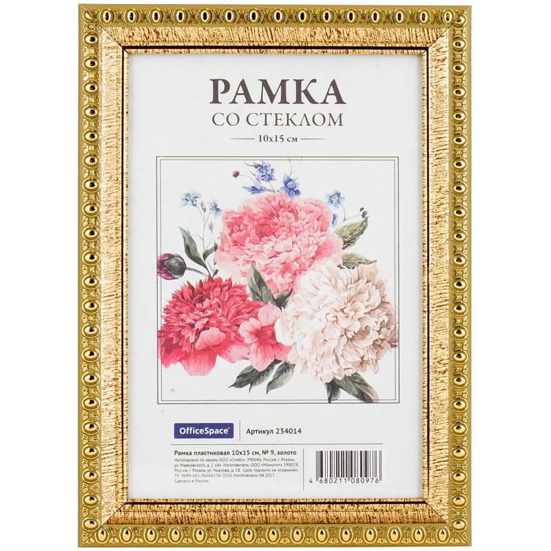 Рамка пластиковая 10*15см, OfficeSpace, № 9, золото