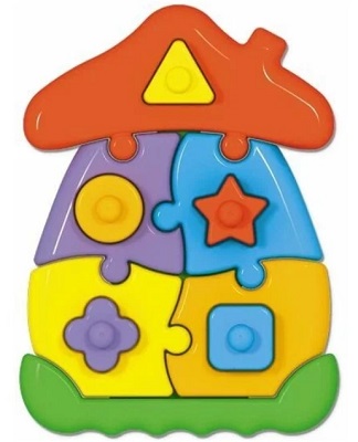 Весело играя малыш научится поэтапно строить "Домик", собирая пазл из ярких “кирпичиков” и крыши.