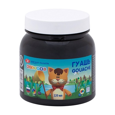 Отличительная особенность гуаши "Цветик" - яркие и насыщенные цвета. Легко отмывается с поверхности. Сохраняет цвет после высыхания, приобретает бархатистую текстуру. При нанесении толстым слоем не растрескивается. При разведении водой приобретает свойства акварели – ложится полупрозрачным равномерным слоем. Большая банка идеальна для занятий с детьми в школах, садах и студиях.