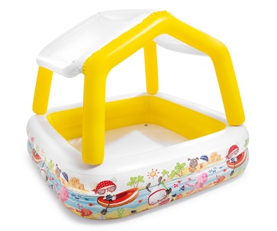 Детские надувные центры получили большое распространение у дачников с детьми. Модель Intex «Бассейн с козырьком» отличается ярким дизайном и продуманным функционалом. Теперь безопасно оставлять малыша под открытым небом на длительный срок. Козырек надежно защищает от прямых солнечных лучей и помогает избежать ожогов. А широкие бортики пригодны для сидения.