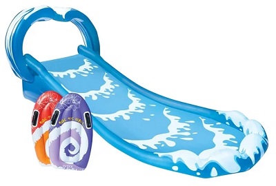 Эта гигантская надувная горка с бассейном предназначена для активных игр детей от 6 лет. Ничего нет приятнее и веселее, чем в жаркий летний денек бесконечное число раз скользить вниз навстречу прохладной воде. Для лучшего скольжения в дополнение к Горке прилагаются две надувные доски с надежными ручками-держателями. В конце ската имеется надувная подушечка для смягчения приземления.