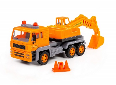 Автомобиль-экскаватор инерционный «Алмаз» от фабрики «Полесье» - это качественная реалистичная игрушка, конструкция которой полностью повторяет дизайн настоящей техники. Спецмашина имеет три пары колёс на металлических осях, кроме того, она оснащена поворотной платформой с подвижным ковшом, который позволит придумывать различные сценарии игры. На кабине авто имеется имитация проблесковых маячков. В комплекте с экскаватором идут дорожные конусы. Изготовлена игрушка из качественных материалов, она дополнит автопарк любого малыша и сделает игру ещё интереснее!