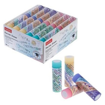 Ластик " Hatber " PVC Вспомнить все: Русский язык 60*10*10мм, 36шт, ассорти, прямоугольный, картонный держатель, картонный дисплей Подробнее