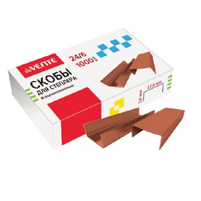 Скобы для степлера "deVENTE" 24/6 1000 шт в картонной коробке, омедненные