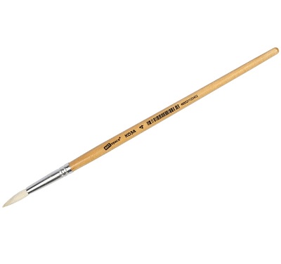Художественные кисти ArtSpace изготовлены из волоса козы. Длинный, мягкий и упругий волос хорошо держит краску и не оставляет следов на поверхности. Кисть круглой формы с короткой ручкой из дерева предназначена для работы с акварелью и керамикой, в живописи тушью, каллиграфии.
