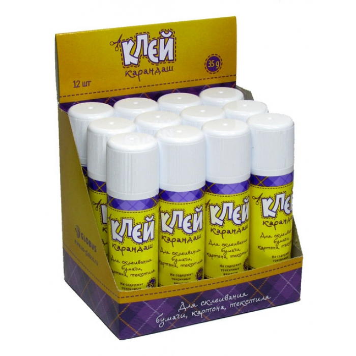 Клей-карандаш " Hatber " NEWtone 36гр основа PVP, 4 дизайна, картонный дисплей, 10702070/200125/5025