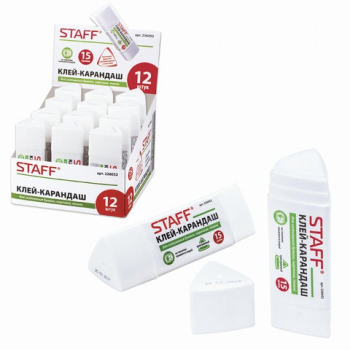Клей-карандаш STAFF 15 г, трехгранный, 226052