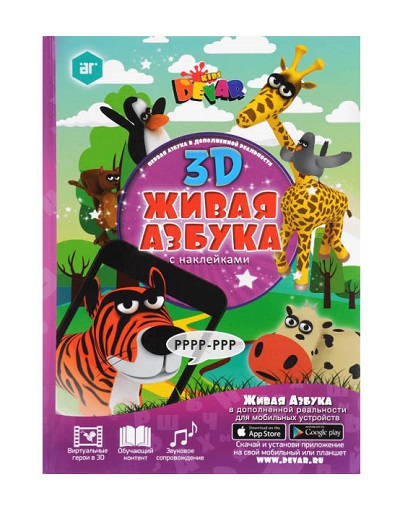 "Живая Азбука для самых маленьких" представляет собой книгу для изучения алфавита с применением технологии дополненной реальности. При наведении мобильного устройства (планшет, смартфон) на страницу Азбуки - буквы и животные на изображении начинают оживать. Каждая буква алфавита сочетает веселую анимацию с животным, обучающее четверостишье и звуковое сопровождение, что улучшает восприятие и способствует развитию памяти и речи ребенка. В книге также присутствуют задания и веселые наклейки для закрепления знаний. Благодаря применению технологии дополненной реальности процесс изучения алфавита становится более интерактивным.