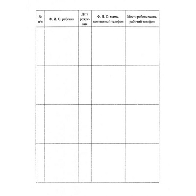 Журнал сведений о семье ребенка