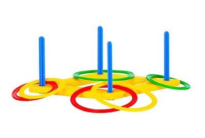 Игра "Кольцеброс" отличный вариант проведения досуга как дома, так и на природе. Можно устраивать соревнования и на занятиях физкультурой в детских садах, и в летних лагерях. В комплект входит все необходимое для игры: шесть разноцветных колец двух размеров, конструкция-подставка и шесты-мишени. Размер основы 27x27 см. Диаметр колец 14 и 19 см. Материал: пластик.