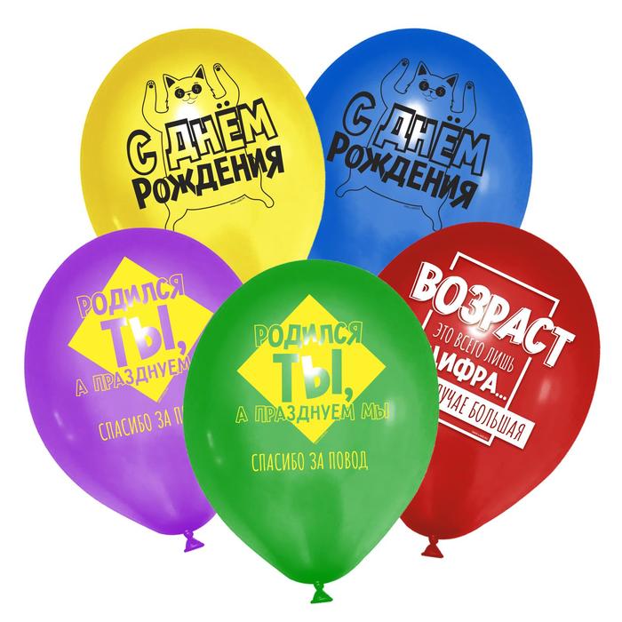 Шар латексный с рисунком " Браво " 12"/30см С Днем рождения! Поздравления классические, ассорти из 5
