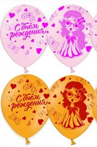 Шар латексный с рисунком " Браво " 12"/30см С Днем рождения! Для девочки, пастель, ассорти из 5 цвет