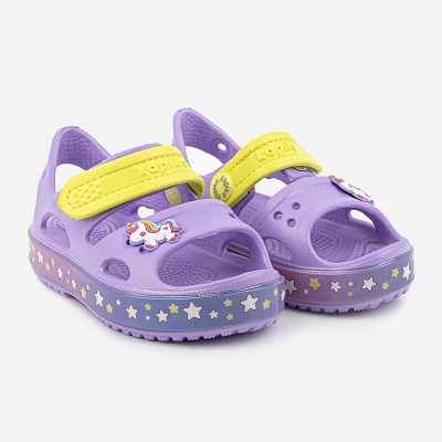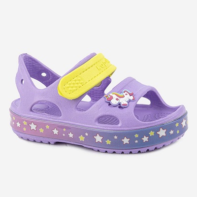 Открытые пляжные сандалии - наш хит! Классный дизайн, эффектные цветовые решения, съемная декор-пуговица, а главное достоинство - светодиоды в подошве. В модели есть липучка, которой можно отрегулировать посадку на ножке. Каждая девочка будет в восторге от такой модели!