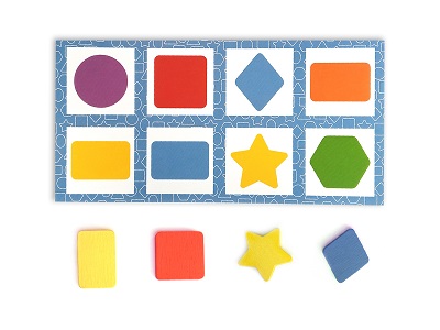 Всем игрокам раздаются игровые карточки. Фишки складываются в мешок и перемешиваются. Ведущий достает по одной фишке и показывает ее игрокам. Игрок, на чьей карточке находится соответствующая картинка, забирает ее и закрывает картинку в карточке. При этом нужно назвать цвет и форму фишки.
