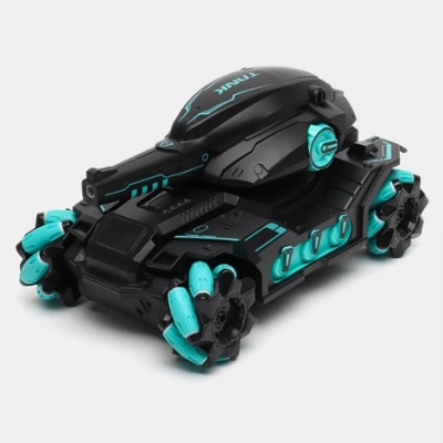 Танк имеет светодиодную подсветку, трюковую подвеску и множество таких интересных функций, как боковой дрифт, езда во всех плоскостях, звуковые эффекты, а также поворотную башню на 30 градусов