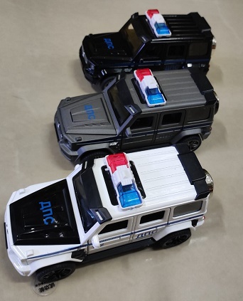 Выполнена из металла. Высокая деталировка. Открывающиеся элементы – двери, капот, багажник. Поворачивающийся руль.