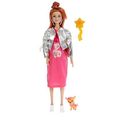 Будущая мама София выбрала для прогулки с собачкой яркое платье с принтом-фламинго и стильную серебристую курточку. Образ куколки дополняют элегантные крупные серьги. Одежду и аксессуары легко снять и надеть. С такой модной куклой девочке будет интересно и весело играть: благодаря тому, что руки и ноги куклы подвижны, им можно придать любое положение. У Софии длинные красивые волосы, которые хозяйка куклы сможет заплетать в разные причёски. Детально проработанный дизайн игрушки вдохновит девочку на новые игровые сюжеты.