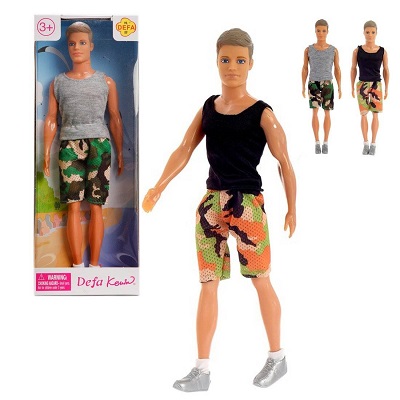 Кукла мальчик спортсмен одет в длинные шорты, майку и кроссовки. Телосложение атлетическое. Внешность миловидная. Кукла Кен составит отличную пару кукле типа Барби.