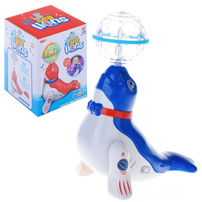 Работает от 3-х батареек "АА" (не входят в комплект). На носу у тюленя вращается шар. Яркая подсветка. Весёлая мелодия.
