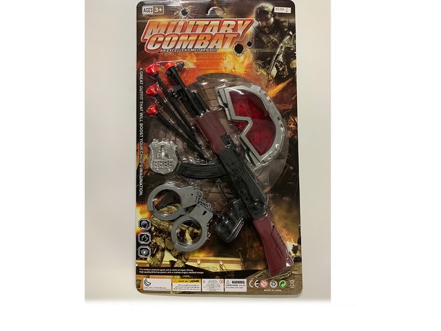 Игровой набор "Военный" обязательно понравится юному герою. С игровым набором маленький герой будет придумывать увлекательные спецзадания, защищать мир и стоять на страже порядка. Подойдёт для активных игр на воздухе и в помещении. Игровой набор поможет развить: - координацию движений - воображение - ловкость и меткость - внимание - моторику.