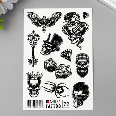 Татуировка на тело "Черепа" 10х15 см 7160447